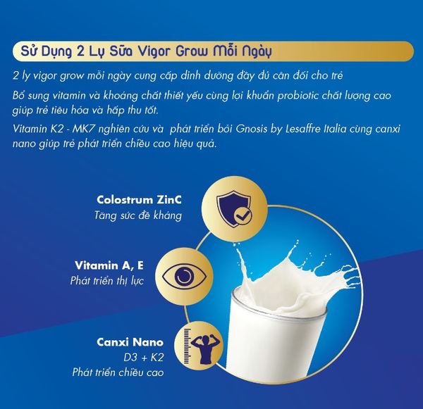 Vigor Grow là sản phẩm dinh dưỡng cho trẻ với công thức thành phần được nghiên cứu kỹ lưỡng nhằm mang lại hiệu quả tối ưu nhất: