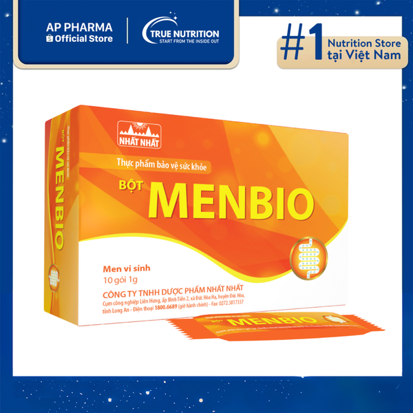 Bột Men Vi Sinh MENBIO là sản phẩm bổ sung vi sinh chất lượng cao từ Công ty Cổ phần Dược phẩm Nhất Nhất, nổi bật với công thức tối ưu chứa các lợi khuẩn Lactobacillus acidophilus và Bifidobacteria bifidum cùng với Fructooligosaccharides (FOS). MENBIO hỗ trợ cải thiện chức năng tiêu hóa, cân bằng hệ vi sinh đường ruột và tăng cường hệ miễn dịch. Sản phẩm được sản xuất theo tiêu chuẩn GMP, đảm bảo hiệu quả và an toàn, giúp bạn duy trì sức khỏe tiêu hóa tốt nhất mỗi ngày.
