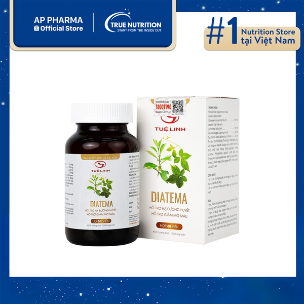 Viên uống Diatema Tuệ Linh là sản phẩm hỗ trợ điều trị tiểu đường và giảm mỡ máu, được bào chế từ thảo dược thiên nhiên như giảo cổ lam, dây thìa canh, ráy gai, và trái nhàu. Sản phẩm không chỉ giúp kiểm soát đường huyết mà còn giảm nguy cơ biến chứng và xơ vữa động mạch, bảo vệ sức khỏe toàn diện cho người mắc tiểu đường.