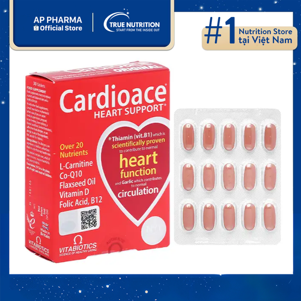 Cardioace là một sản phẩm nổi bật trong dòng thực phẩm chức năng hỗ trợ sức khỏe tim mạch, được sản xuất bởi Vitabiotics, một công ty dược phẩm hàng đầu đến từ Vương quốc Anh. Với sự kết hợp hoàn hảo của các thành phần thiết yếu như Omega-3, CoQ10, và các vitamin cũng như khoáng chất quan trọng, Cardioace không chỉ hỗ trợ sức khỏe tim mạch mà còn mang lại nhiều lợi ích cho sức khỏe tổng thể. Cardioace cung cấp một giải pháp đơn giản và hiệu quả để cải thiện sức khỏe tim mạch, làm giảm nguy cơ các bệnh liên quan đến tim.
