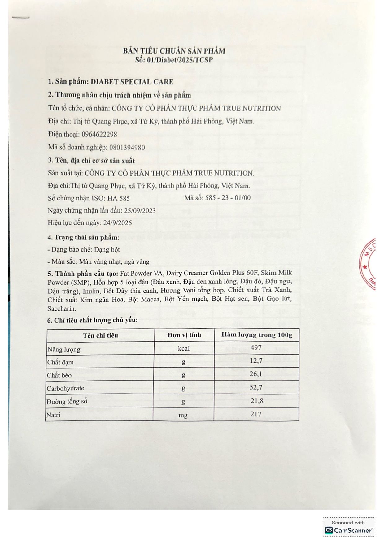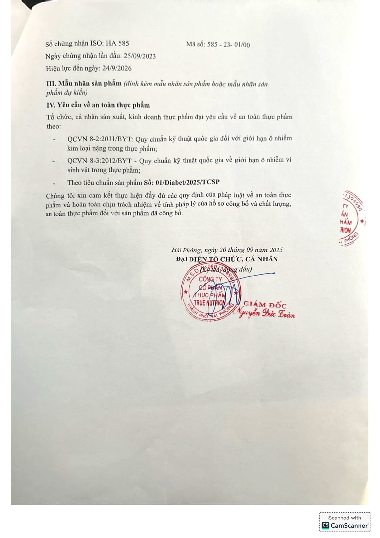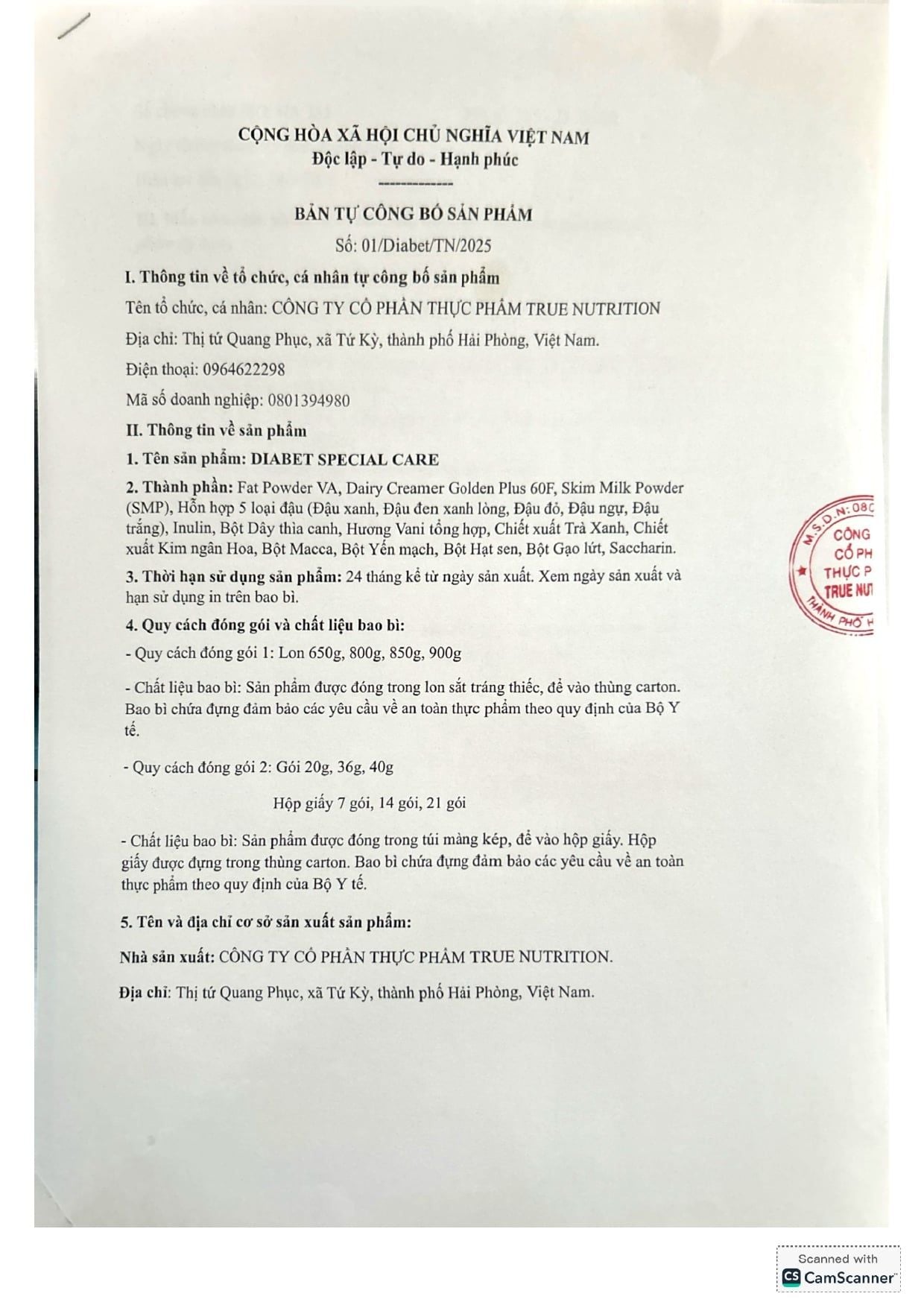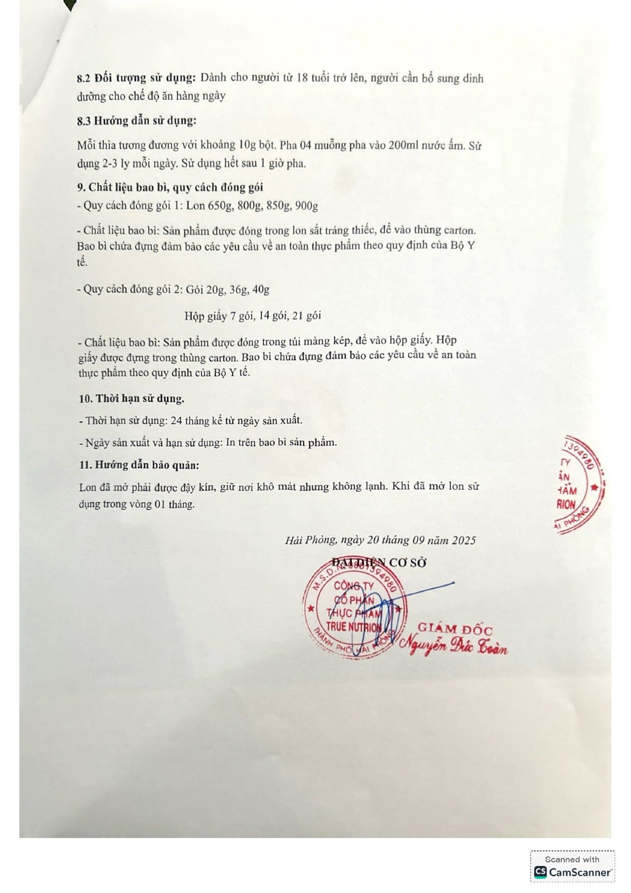 | CÔNG TY CỔ PHẦN THỰC PHẨM TRUE NUTRITION | |