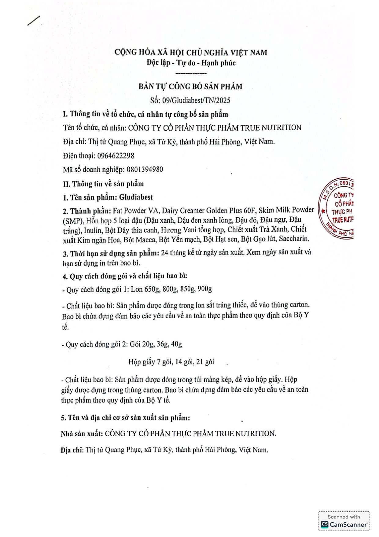 | CÔNG TY CỔ PHẦN THỰC PHẨM TRUE NUTRITION | |