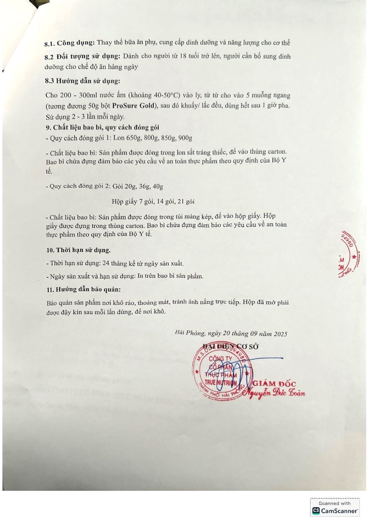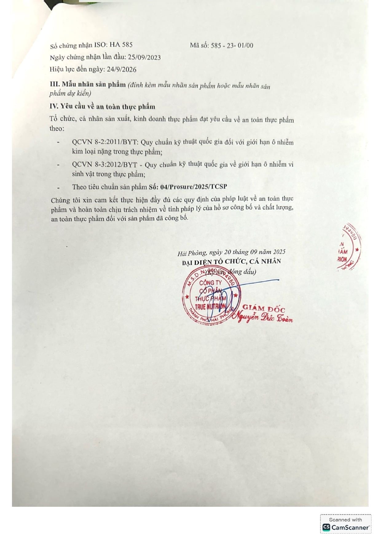 | CÔNG TY CỔ PHẦN THỰC PHẨM TRUE NUTRITION | |