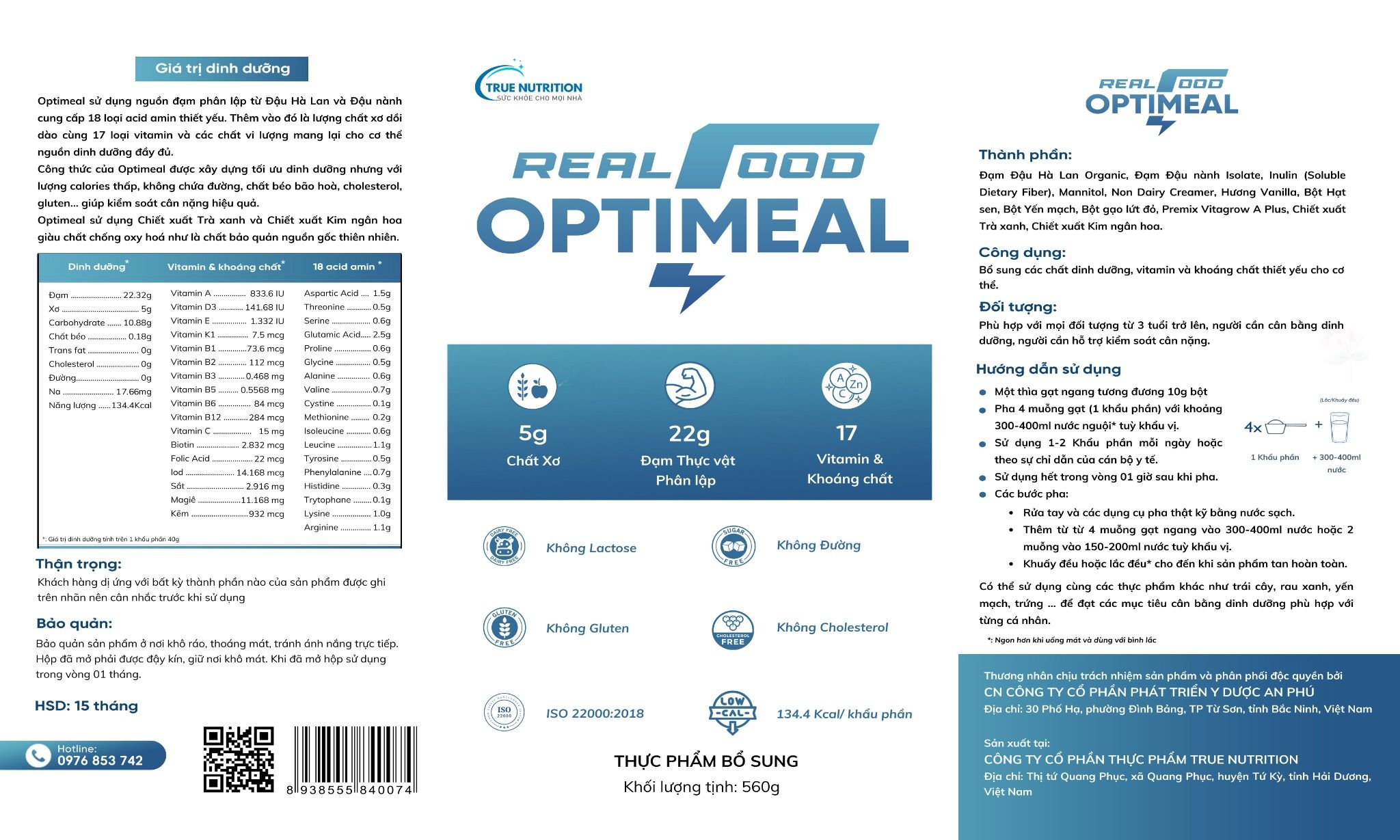 Optimeal là sự kết hợp thành phần dinh dưỡng thiết yếu. Mỗi khẩu phần 40g của Optimeal chứa: