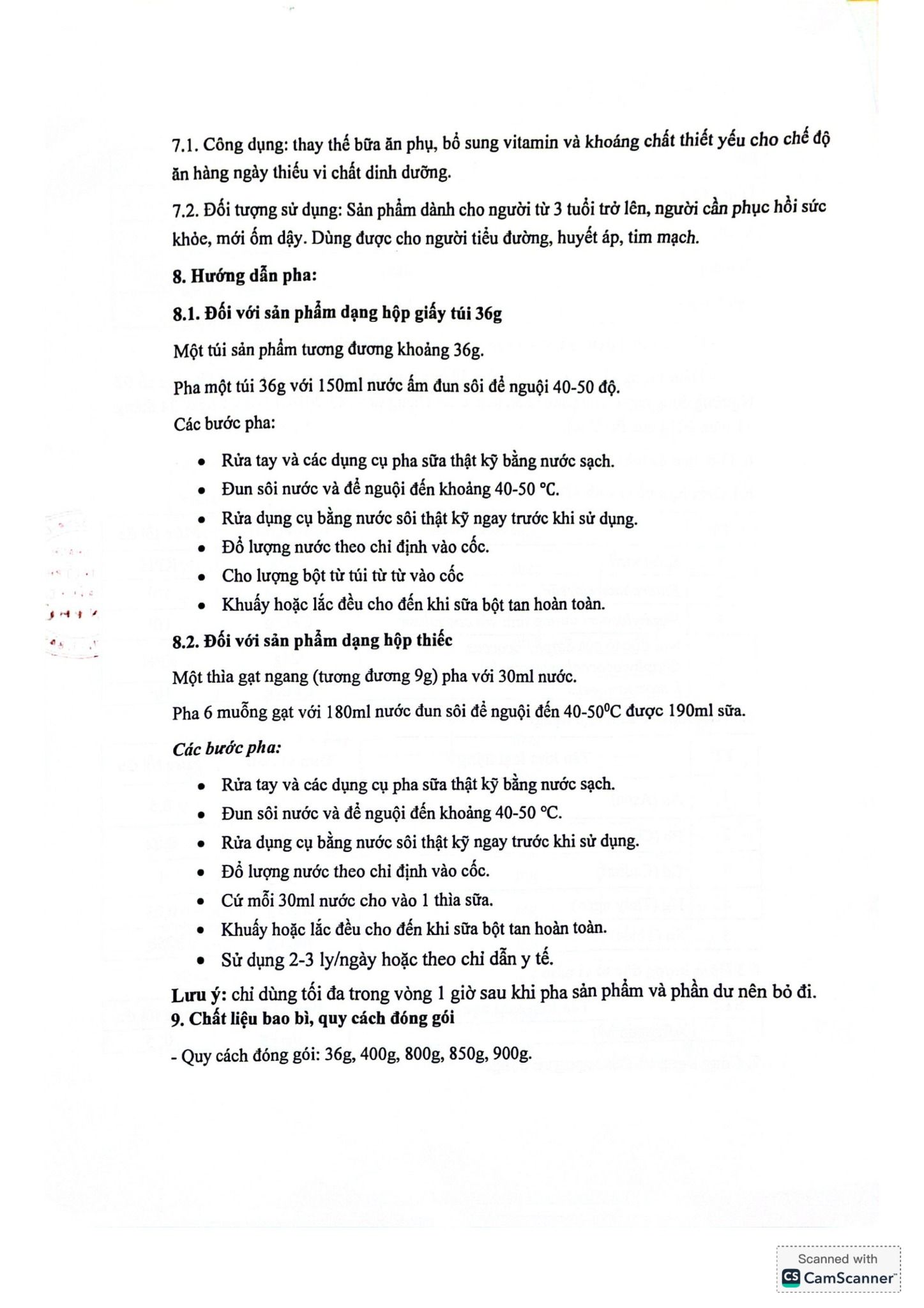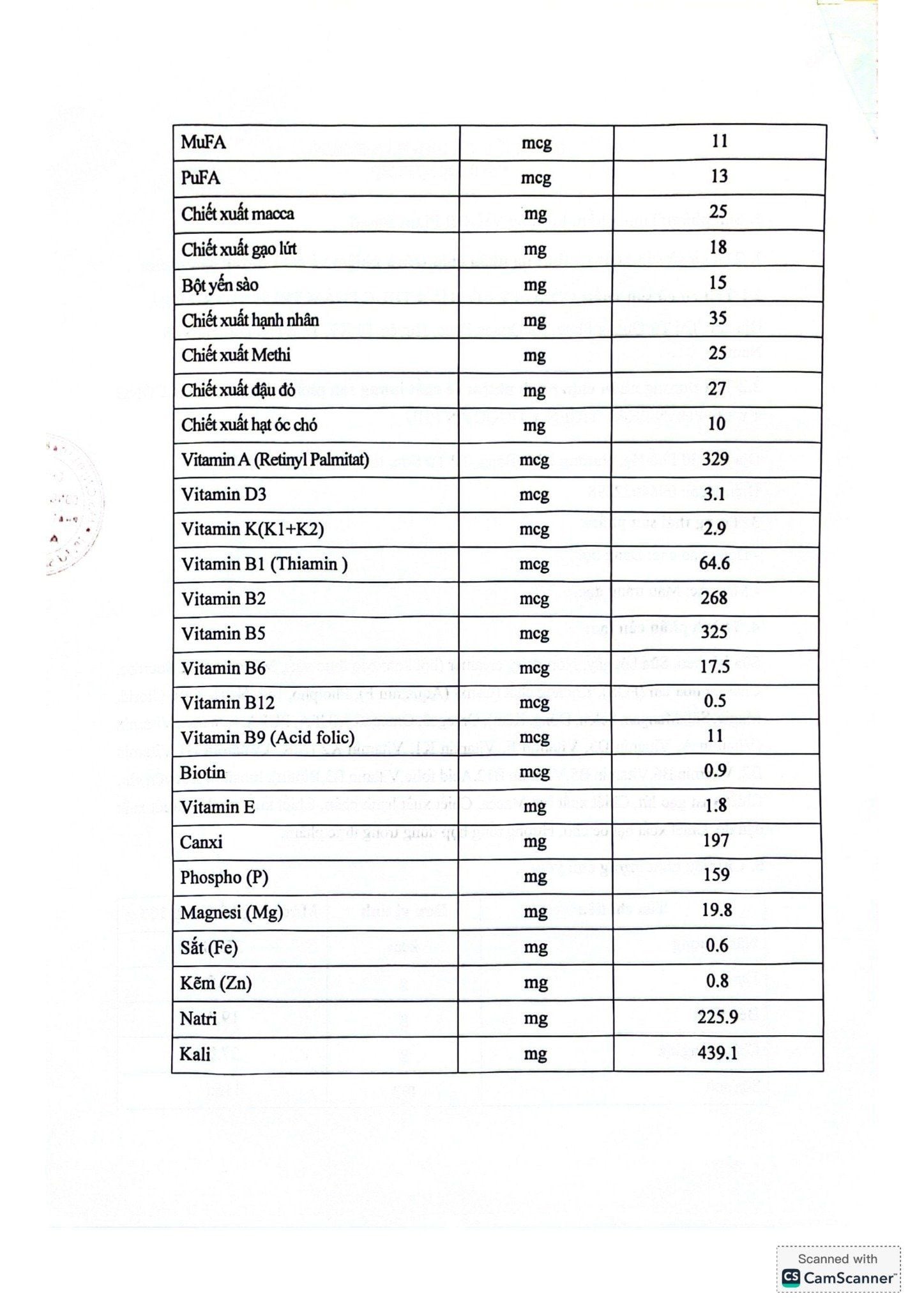 - Mỗi ly 200ml pha với 4 muỗng gạt