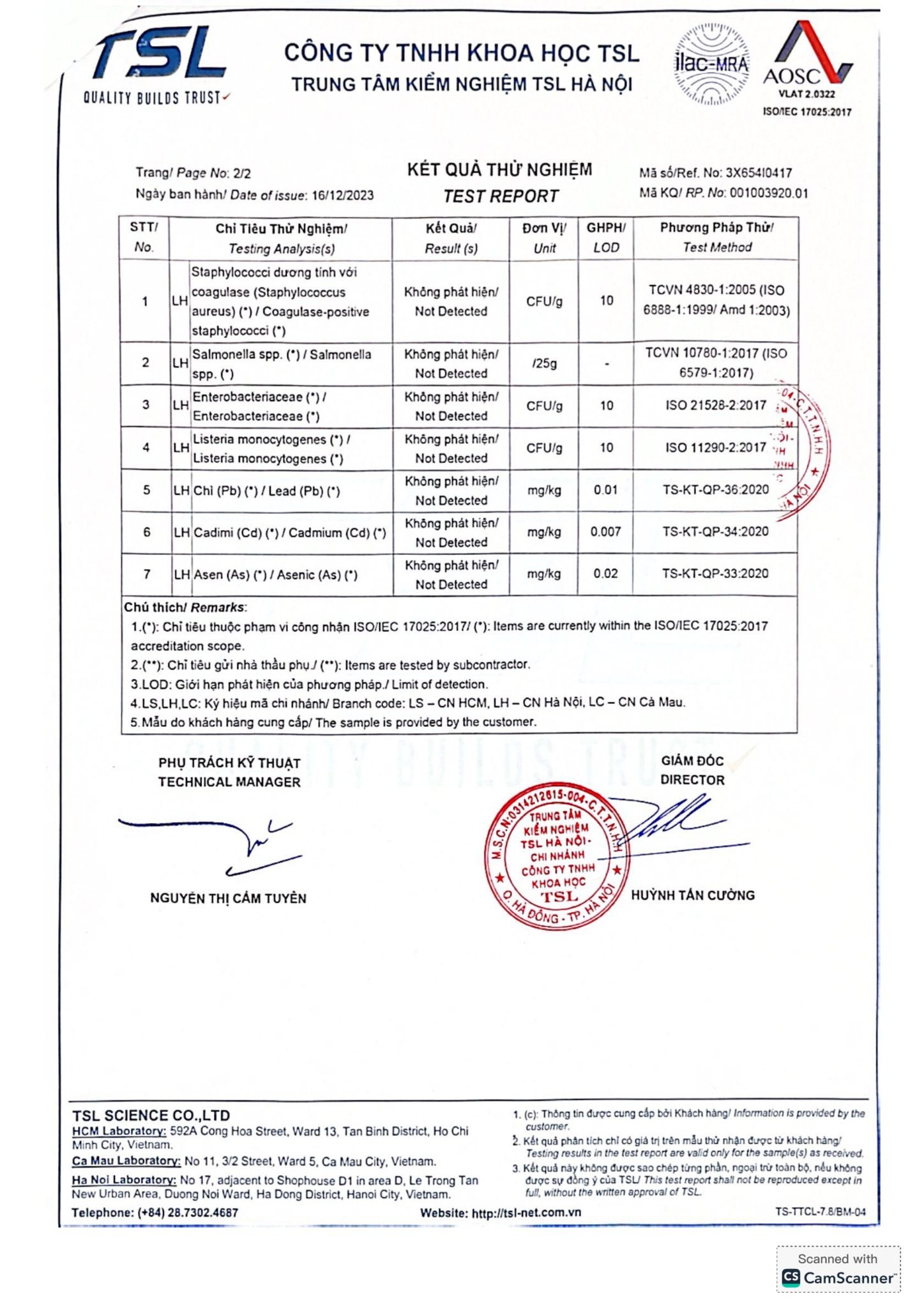 - Tiêu chuẩn chất lượng sản xuất: HACCP và ISO 22000