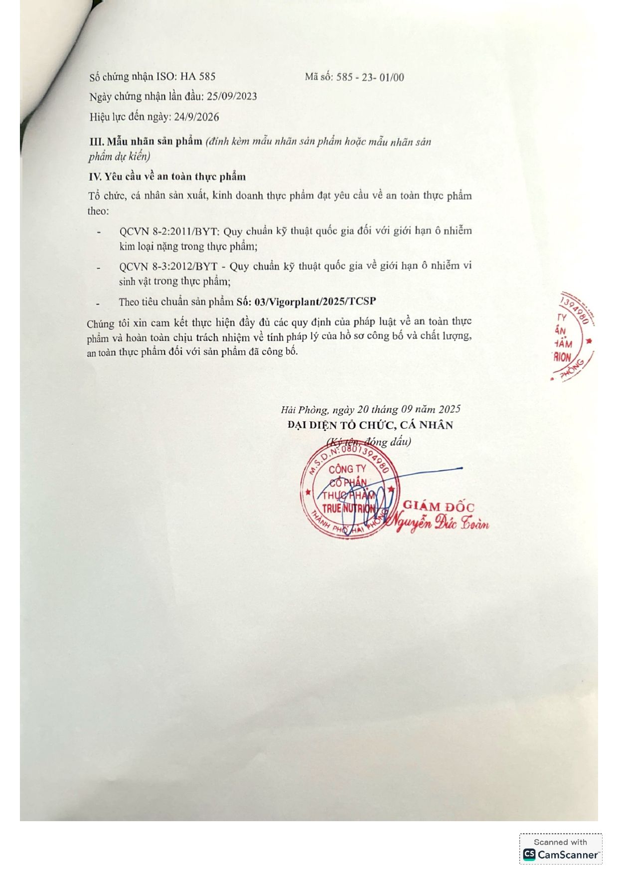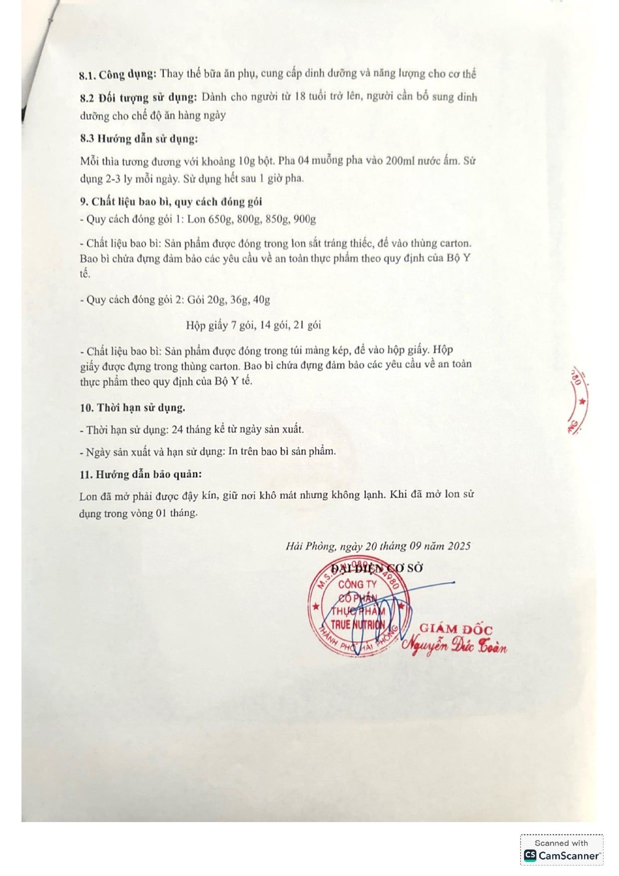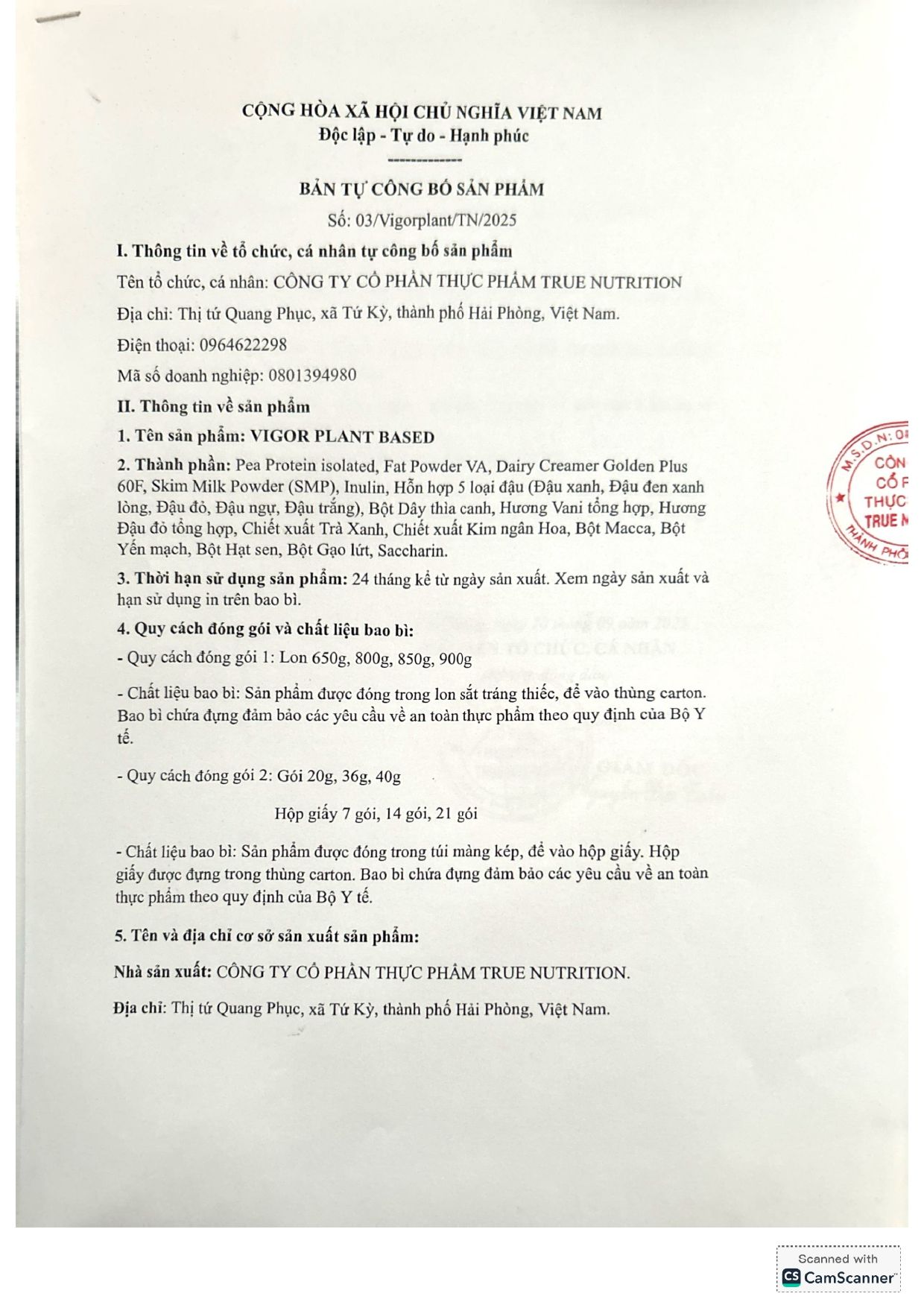 | CÔNG TY CỔ PHẦN THỰC PHẨM TRUE NUTRITION | |